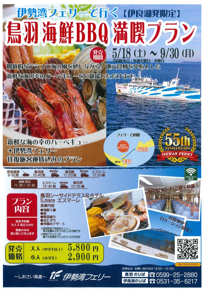 【伊良湖発限定】伊勢湾フェリーで行く鳥羽海鮮BBQ満喫プラン チラシPDF (PDFファイル:874.41KB)