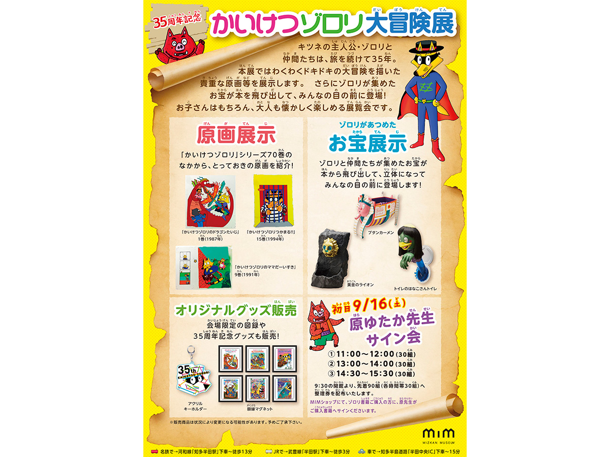 「かいけつゾロリ大冒険展」初日に、MIMショップでゾロリ書籍をご購入の方に、原先生がご購入書籍へサインをくださいます!