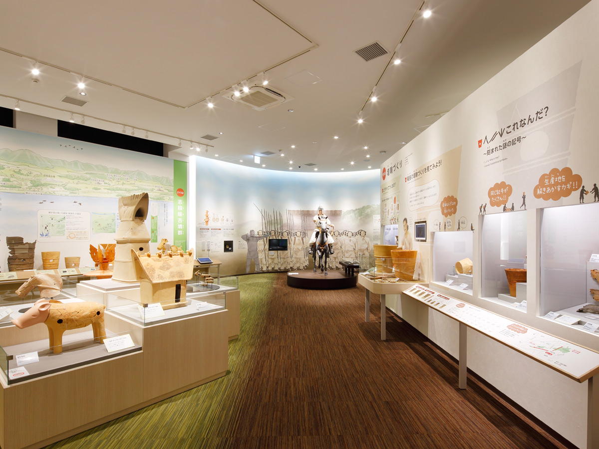 【展示室】志段味古墳群の出土品を展示。ガイダンス映像、時代の変遷、ものづくり、暮らしなどを分かりやすく解説しています。