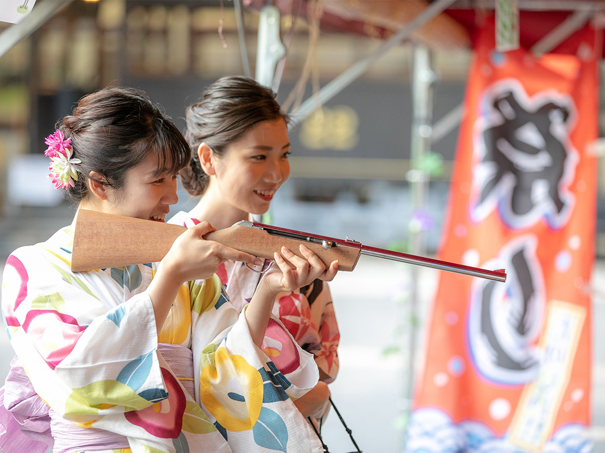 夏といえばやっぱり縁日!射的や輪投げなど、懐かしい遊びで楽しめます。