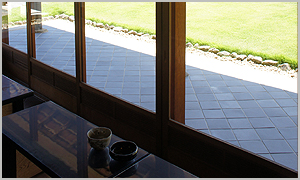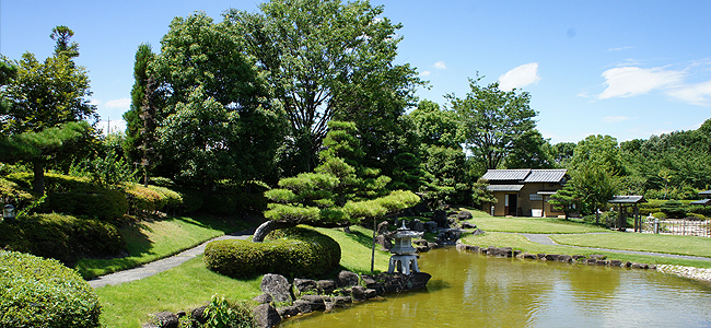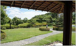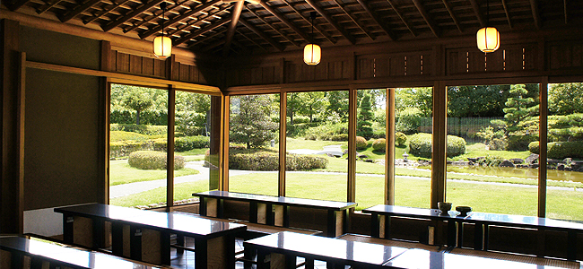文化センターサンアート内に併設された「ふるさと会館」は、日本庭園とお茶室で構成された施設。日本庭園は「鶴駕苑」(かくがえん)の名称です。この鶴駕苑に隣接する立札席では、庭園を眺めながら抹茶をいただけます。抹茶は、和菓子付きで350円です。