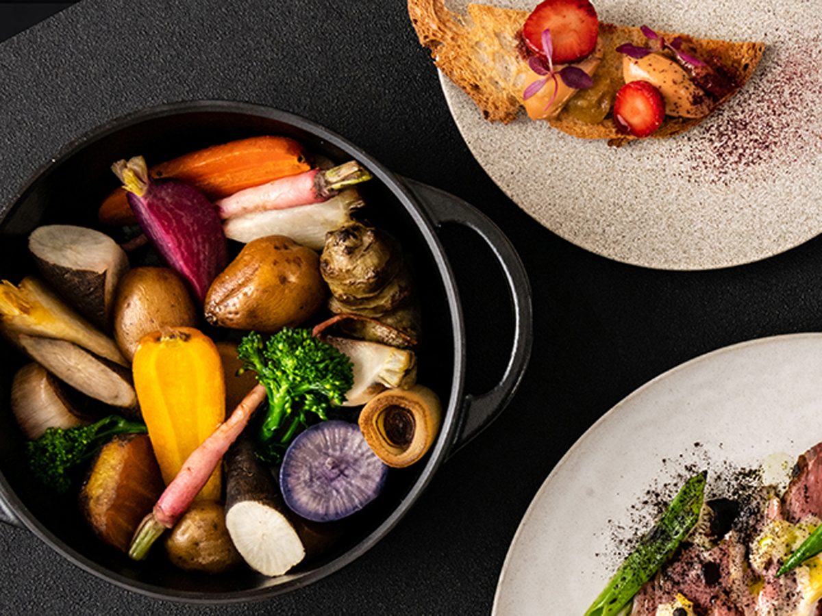 中川運河の美しい水面を眺めながら、素材本来の味を活かした本格的なバーミキュラ料理を楽しむことができます。多くの料理はバーミキュラのままサーブされ、ブランドの世界観を満喫することができます。