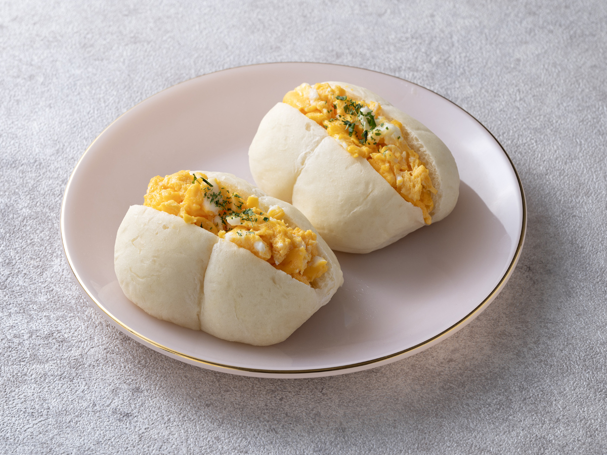 双子のように2つに膨らんだフワフワのパンに玉子をたっぷり挟みました。