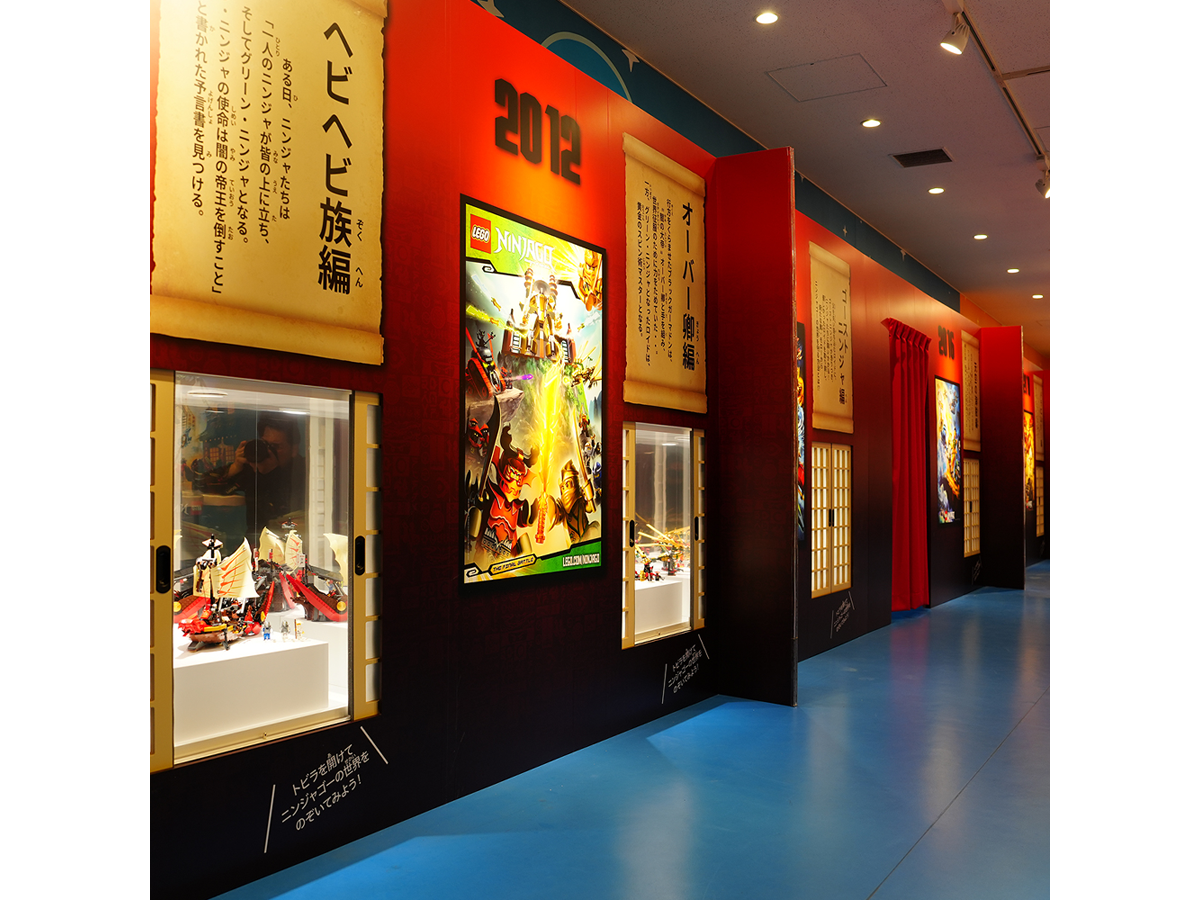 今年もワークショップ施設「リビルド・ザ・ワールド・センター」が体験型ミュージアム「レゴ® ニンジャゴー ミュージアム」として期間限定オープン。「レゴ® ニンジャゴー」を知らない人でも「レゴ® ニンジャゴー誕⽣の瞬間」から「キャラクターの成り⽴ち」など、これまでの歴史をイラスト、アニメの収録台本の展示を通して楽しみながら知っていただく空間となっています。