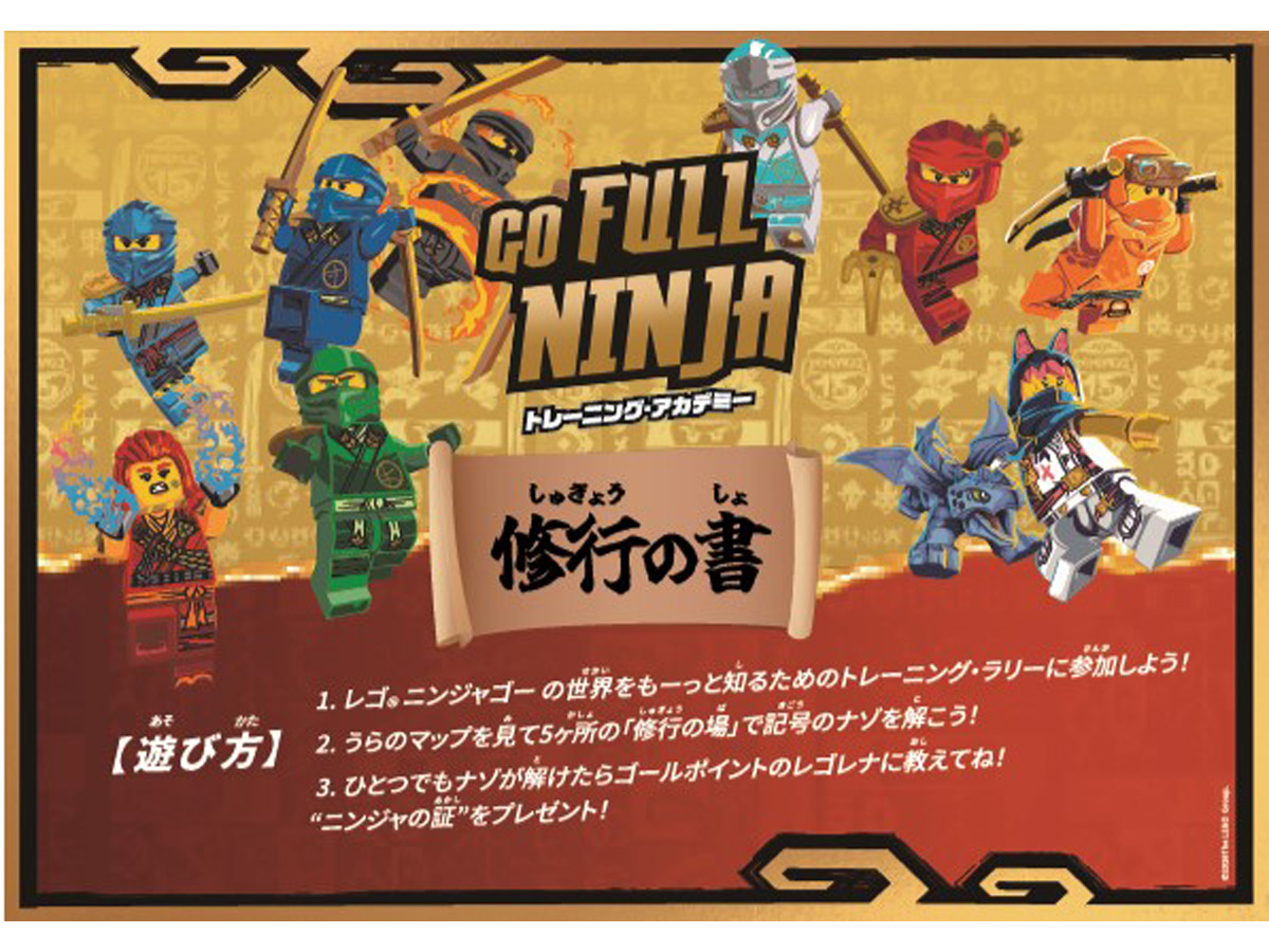 レゴランド® ・ジャパン パーク内に散りばめられた「修行の場」で謎を解いてニンジャを探すトレーニングラリーが開催されます。パーク⼊場時に参加⽤紙を⼿にした時からニンジャの修⾏が始まります。謎を解いてニンジャを見つけることができると、ニンジャの証メダルが貰えます。
