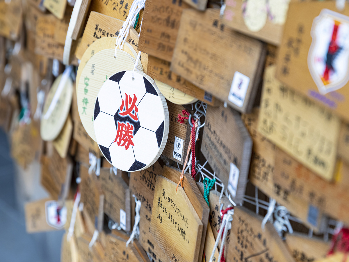 境内にはたくさんの神が祀られていて、中でも珍しい足腰をお守り戴く足名椎神をお祀りする足王社が有名です。平成13年日韓共催サッカーワールドカップの年に足の御守としてサッカー日本代表チームエンブレム織り込み御守りとエンブレム絵馬を授与し始めたところ、多くのサポーターが押しかけサッカー神社と呼ばれるようになり、今日では足腰の神様としてプロスポーツ選手を始めスポーツにいそしむ多くの人々が参拝に訪れる神社になっています。