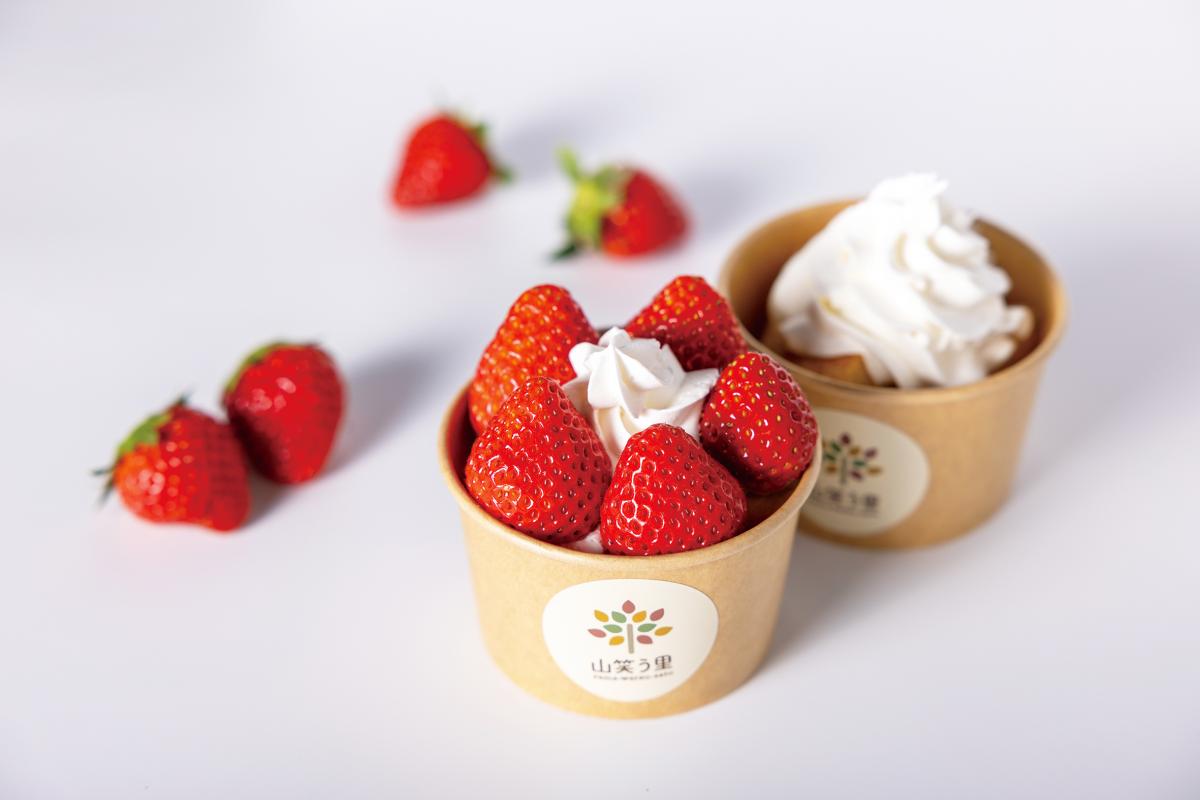 えびせんべいの里の姉妹会社「山笑う里」が運営する、人気の「よつぼし」、「すず」や、新登場「はるひ」などを楽しめる観光農園。練乳やチョコソースは無料でかけ放題!