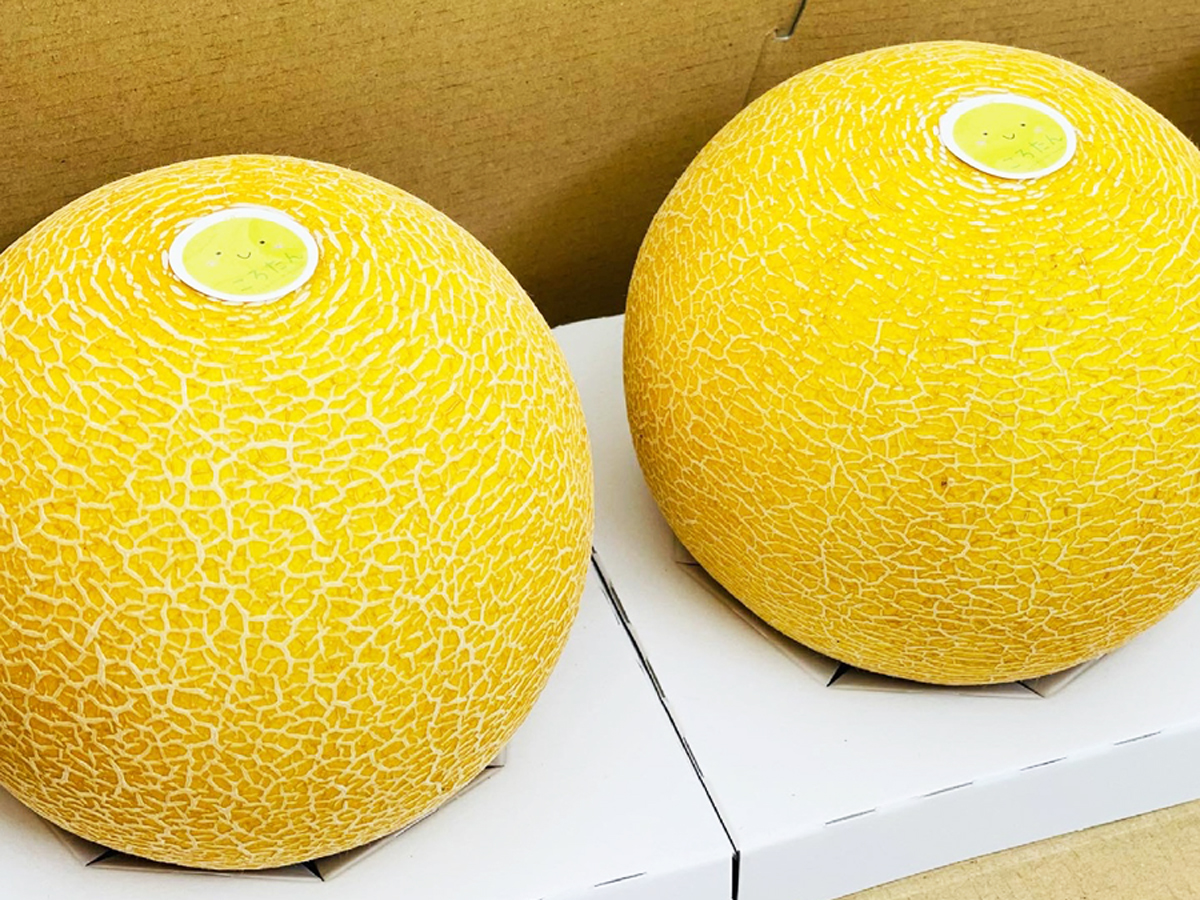 ころたんは、一般的なメロンより小ぶりな食べきりサイズ。果皮が黄金色、果肉が鮮やかな緑色のコントラストが美しく、糖度が15度以上になることもあるメロンです。