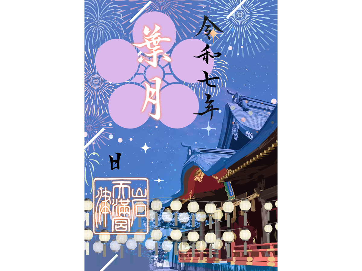 「碧天の盛夏」のデザインとともに、8月24日(日)に執り行われる神事「献燈祭」の提灯が並ぶ境内風景のデザインが用意されています。