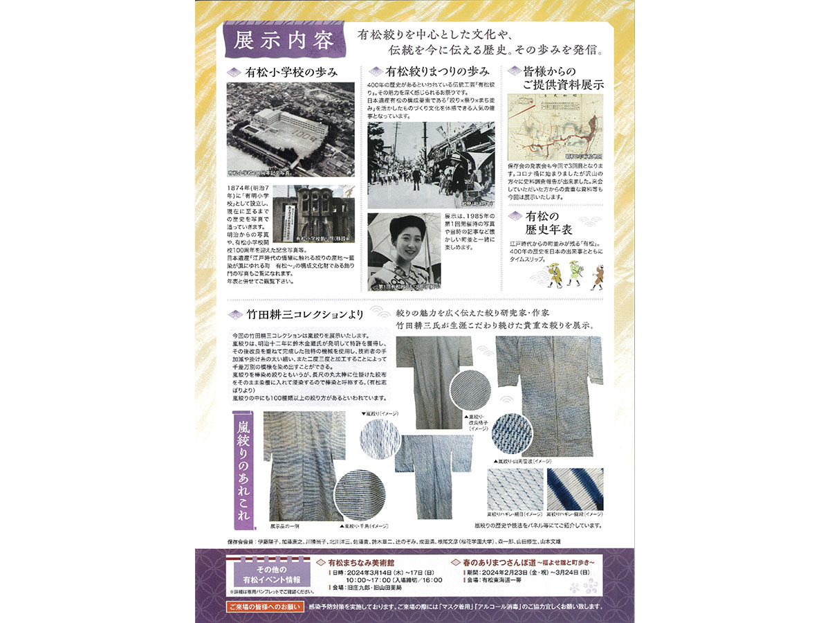 絞りの魅力を広く伝えた絞り研究家・作家 故竹田耕三が生涯こだわり続けた貴重な絞りを展示します。