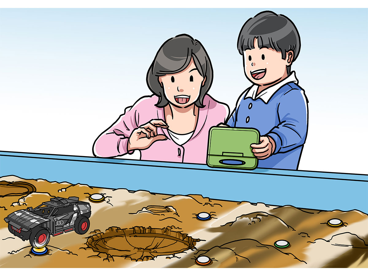 キミはレゴ®ブロックでできた宇宙探査車のドライバー!さあリモコンを操作して、クレーターだらけの惑星を走り回ろう!無事にミッションをクリアできるかな?