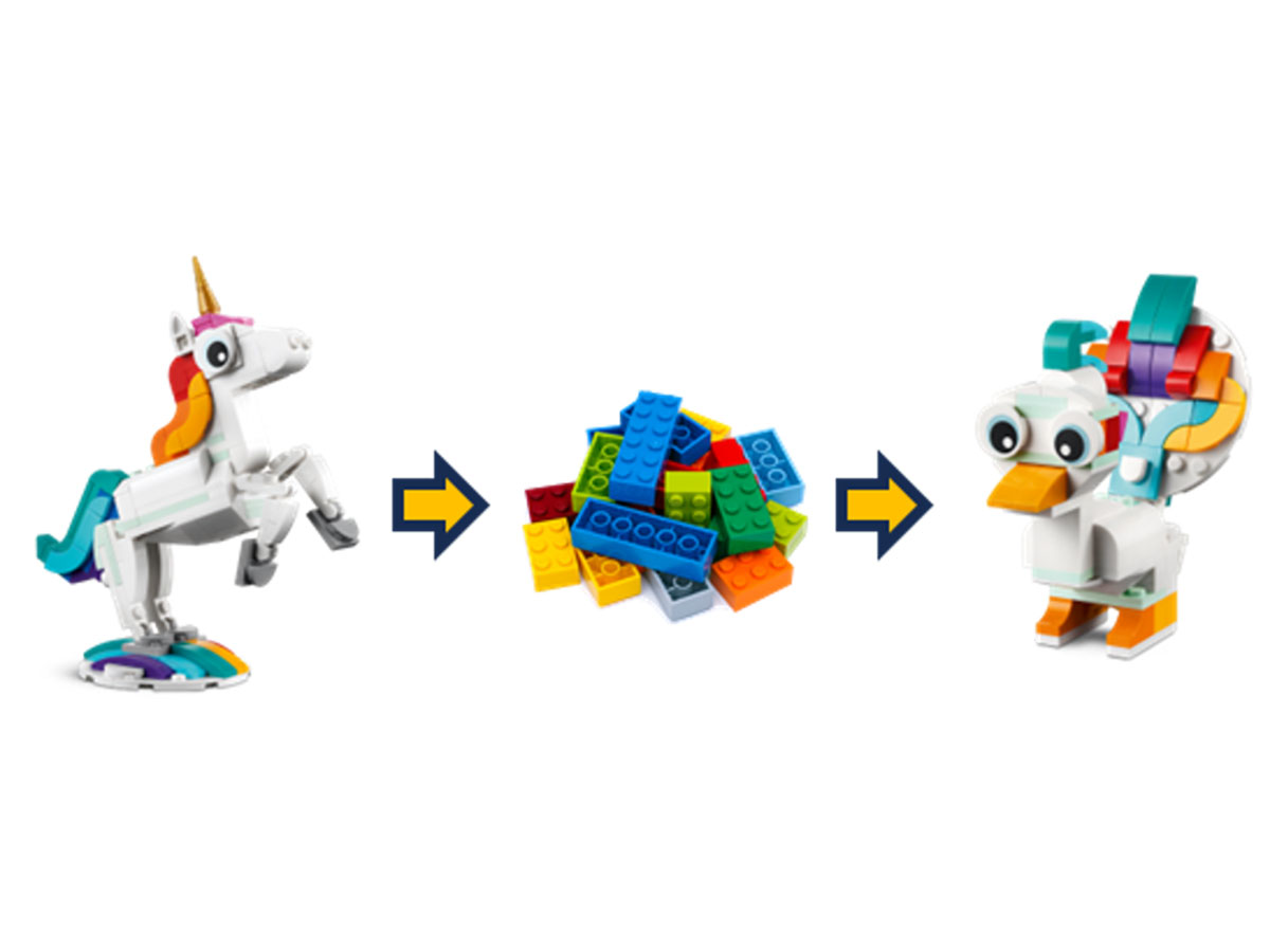 誰かの創造力でつくったレゴ®ブロックの作品を、君の創造力で別のカタチに生まれ変わらせよう!まったく同じパーツのはずなのに、毎日いろんな作品に変化するよ♪