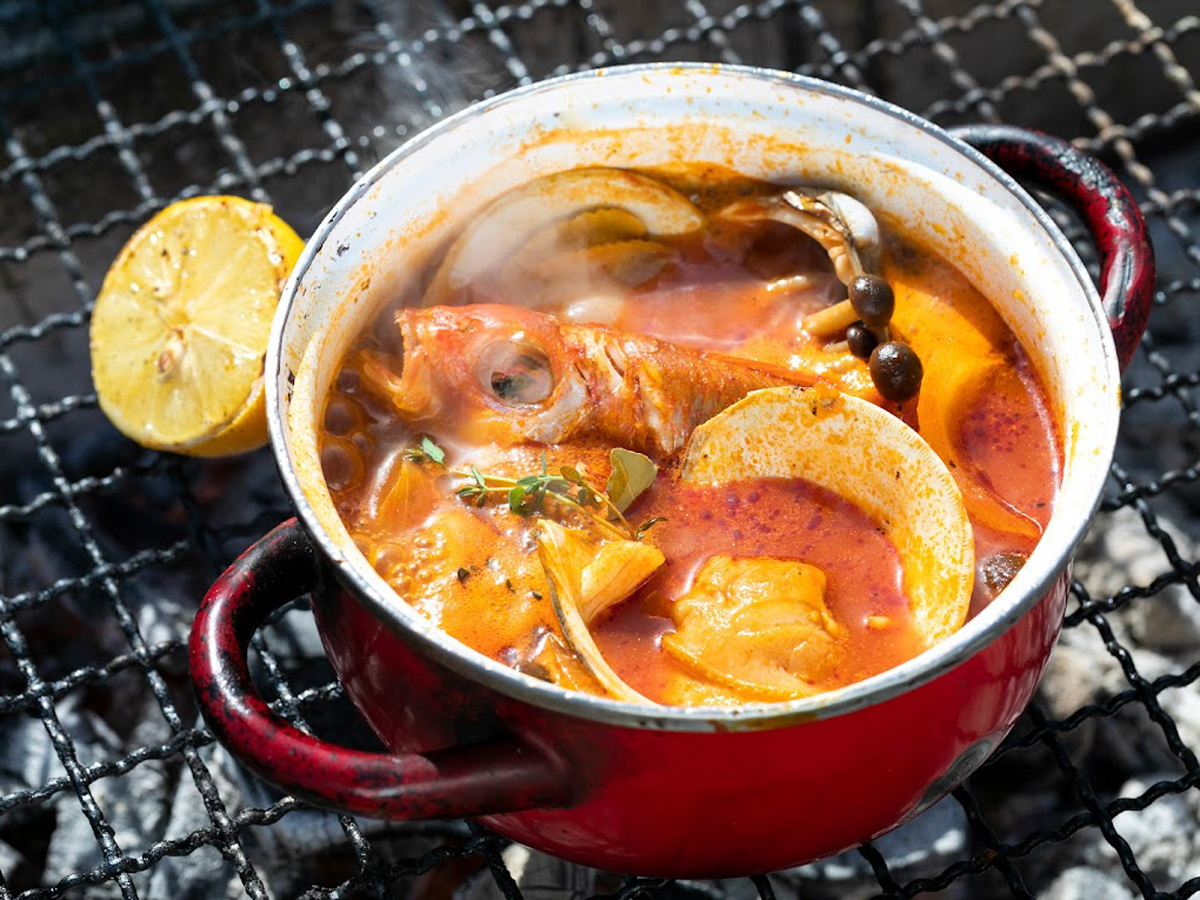 自分好みに具材を追加するスタイルの、ごろごろ野菜とベースのスープが入ったアヒージョ・ブイヤベースを注文ごとにお作りしています。