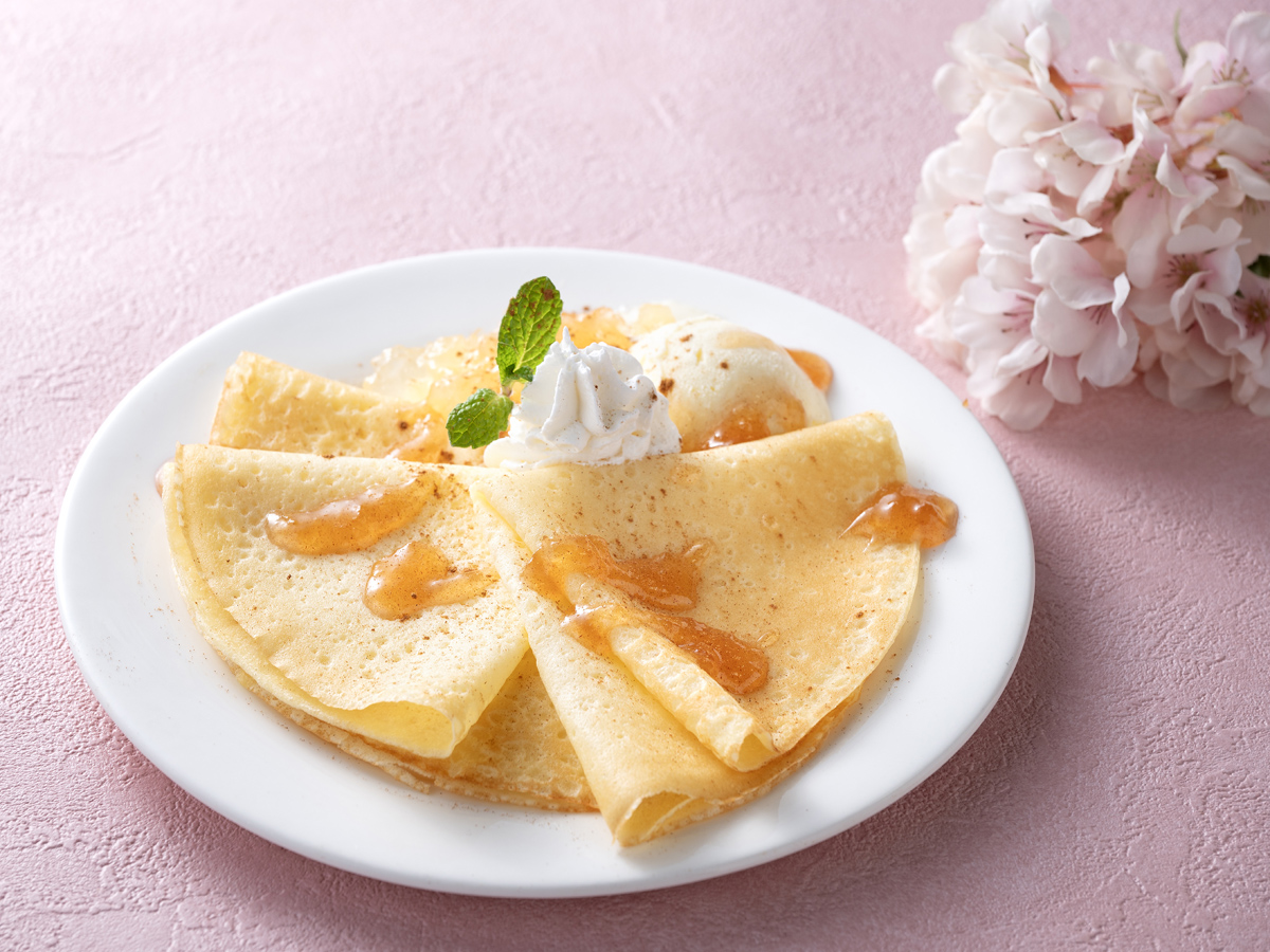 香り豊かなシナモンと青森県産のりんごコンポートを使用したデザートクレープです。