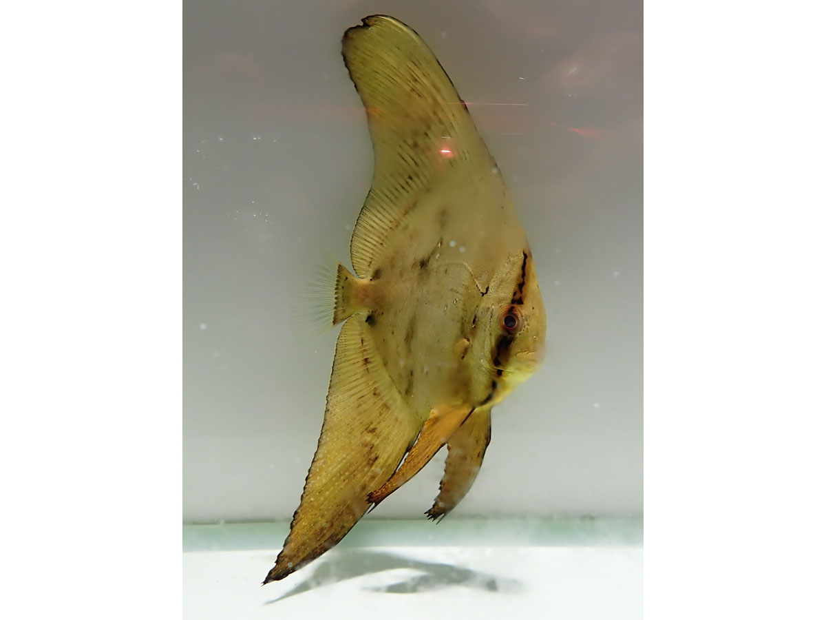 インド・太平洋の熱帯、および亜熱帯海域に生息し、その姿から英名は「batfish(コウモリ魚)」と呼ばれています。また、幼魚は枯れ葉に擬態しながら漂流し、成長すると体は銀色で長い背ビレと臀ビレは短くなるなど、全く違う姿に変わります。