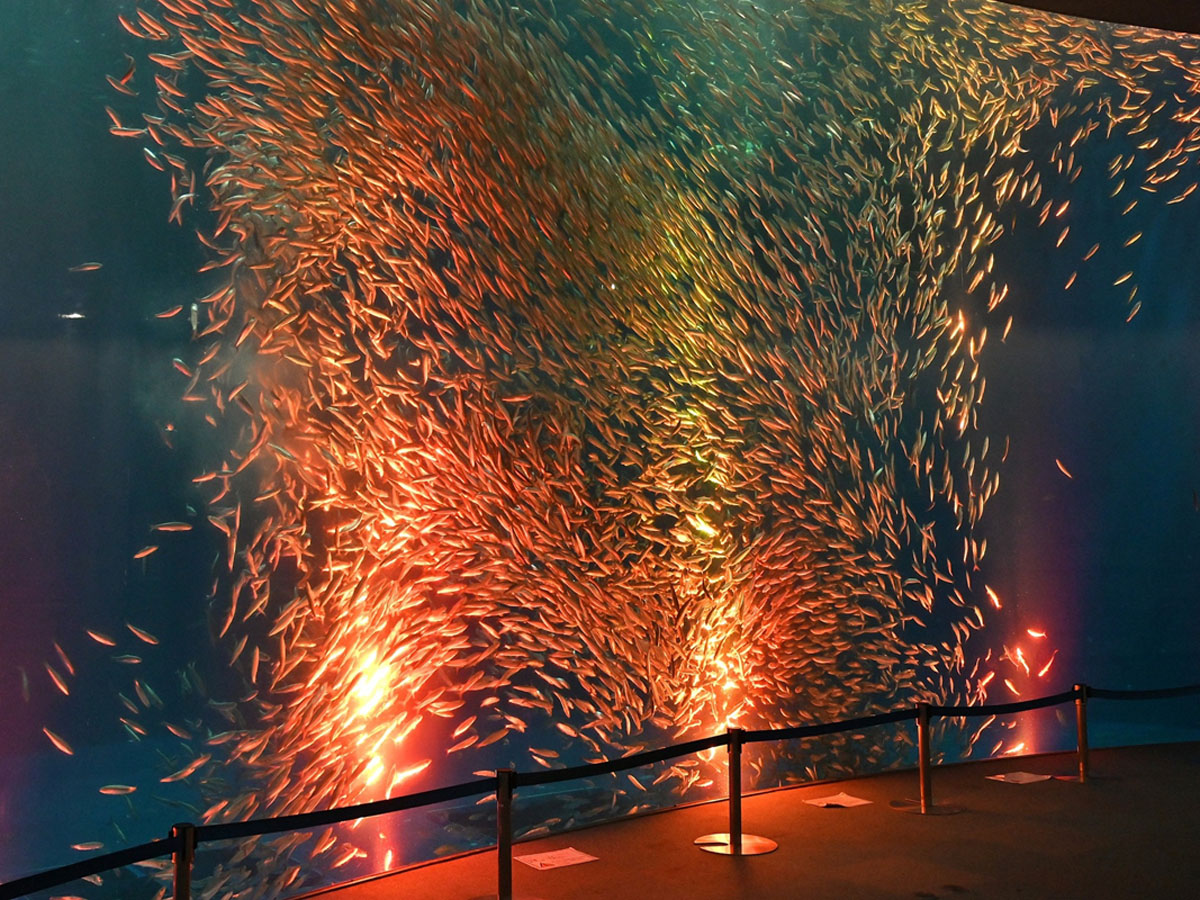 約35,000匹のマイワシがエサを求めて群泳する人気イベント「マイワシのトルネード」のライティングカラーとBGMが"ハロウィン"仕様に。妖しく美しいマイワシの幻想的なパフォーマンスは圧巻です。