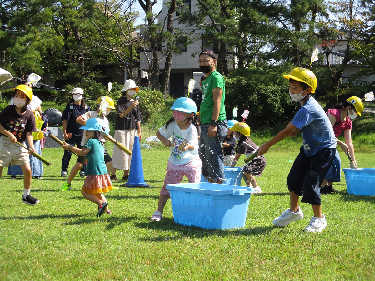 自分で作った竹水鉄砲で、みんなと楽しくバトル!竹水鉄砲は持ち帰りOK♪