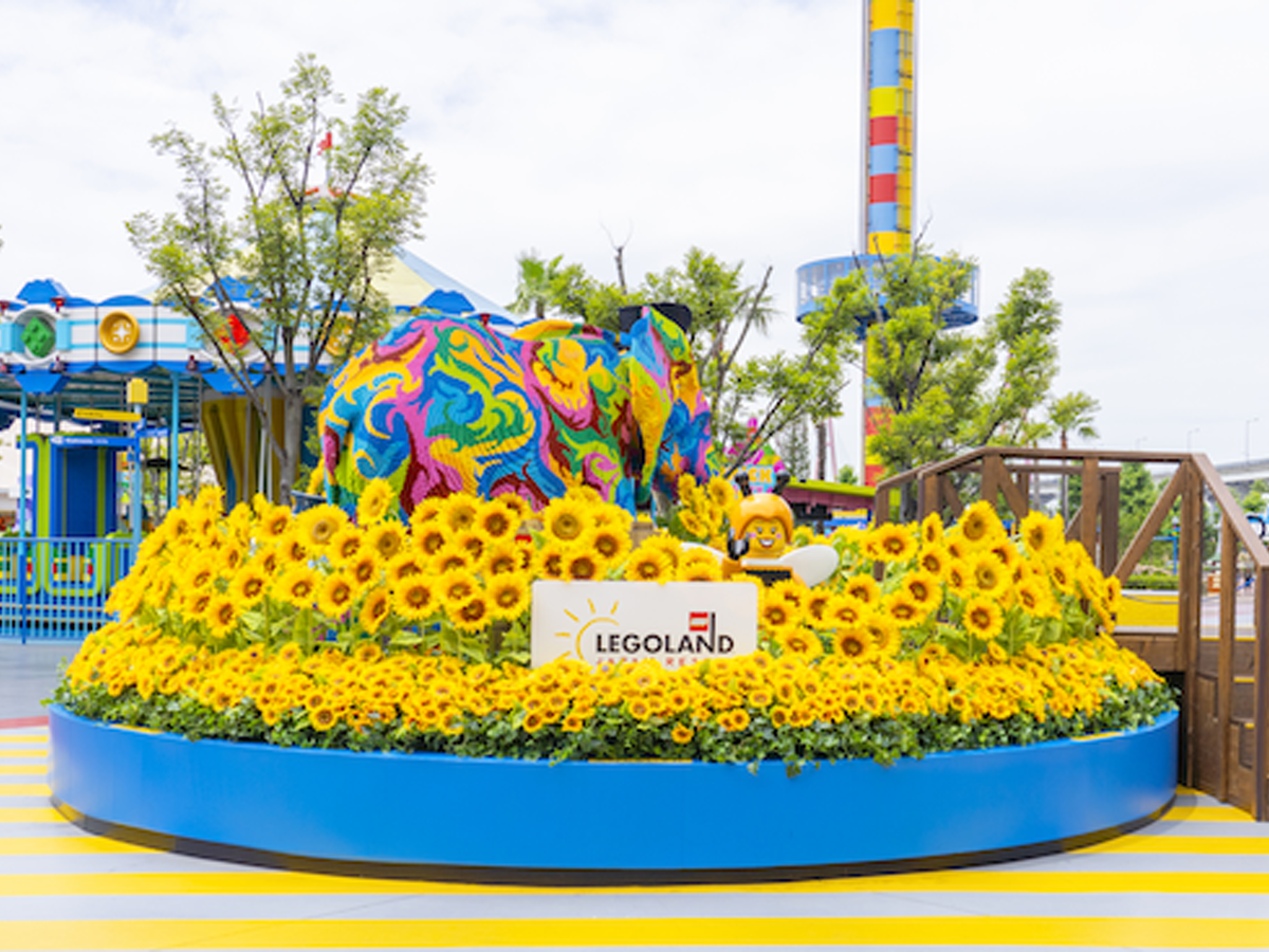 エントランスを抜けると夏らしさ満点の「ひまわり」の特別なフォトスポットがお出迎え。よく見ると、中にはレゴ® ブロックでできたひまわりも。ご家族で夏の思い出写真を撮りながら探してみてください。