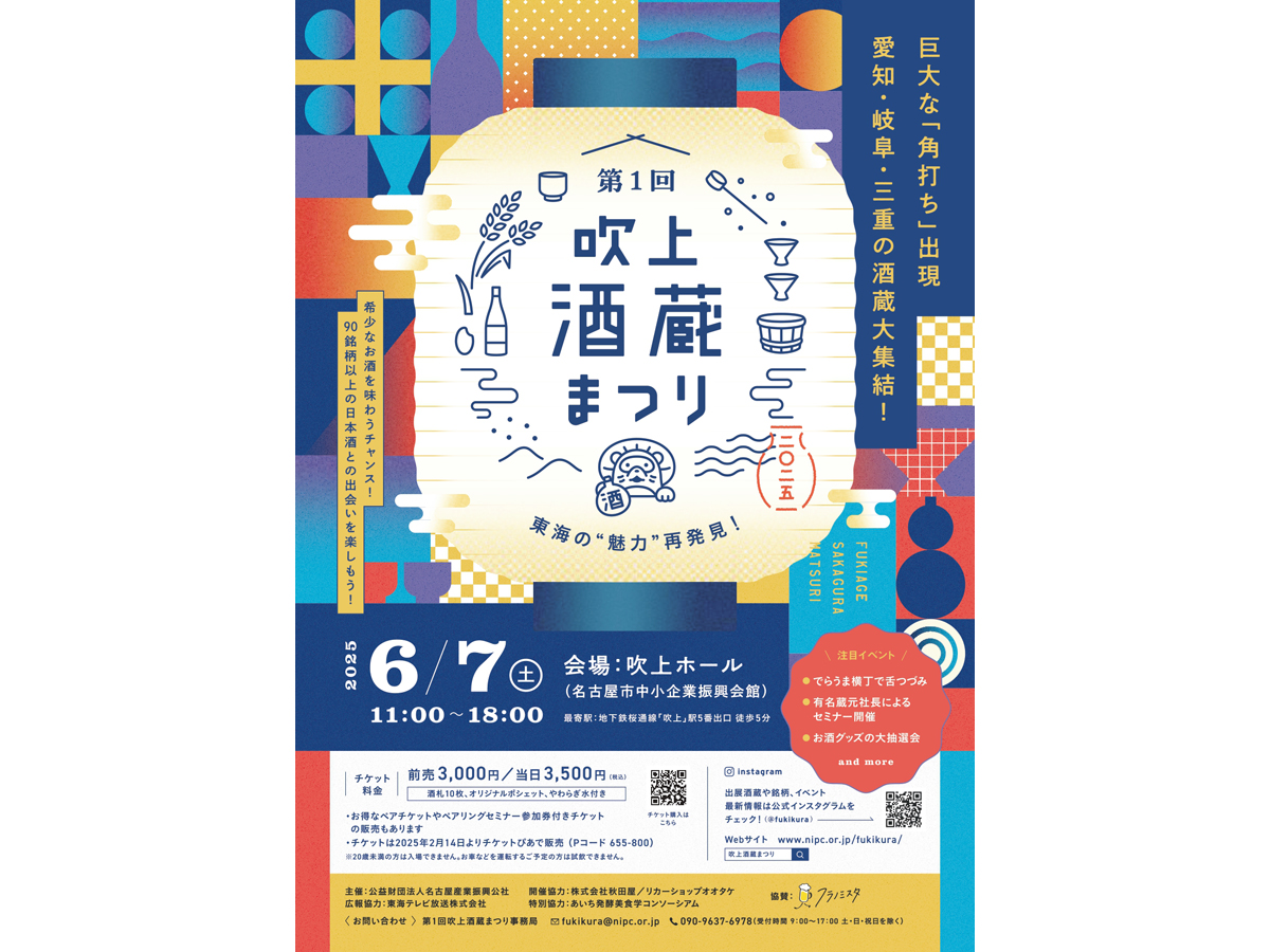 愛知・岐阜・三重から31の酒蔵が参加し、90銘柄以上の日本酒の試飲に加え、お酒がすすむ至福の逸品が味わえるイベントが開催されます。5000㎡の広い吹上ホールが巨大な「角打ち」に!飲食スペースにはイスをご用意し、空調完備の快適な会場でゆっくりお楽しみいただけます。