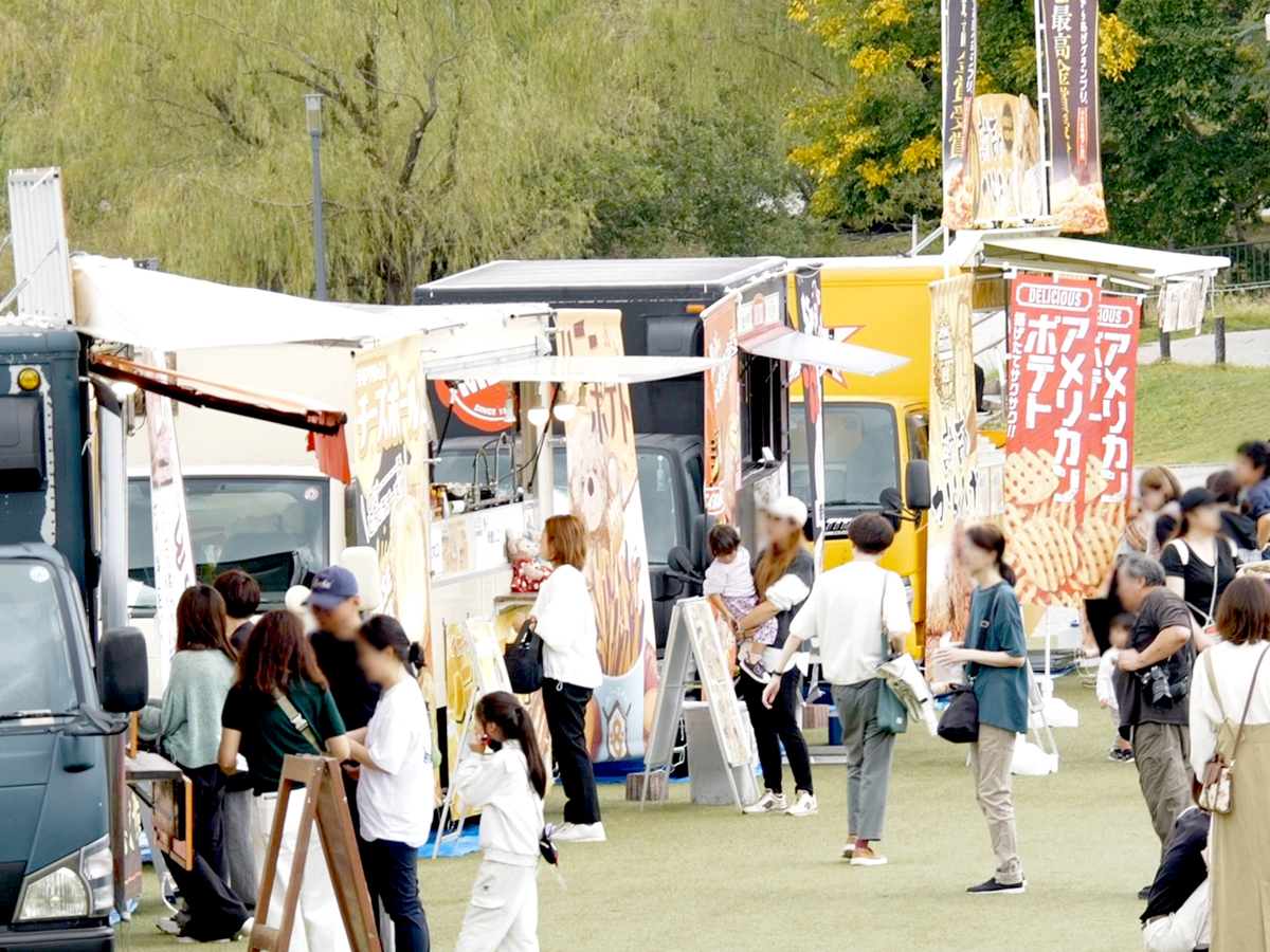 会場内には飲食ブースやキッチンカー、物販ブースも充実しており、心地よい音楽とともにグルメやお買い物もお楽しみいただけます。