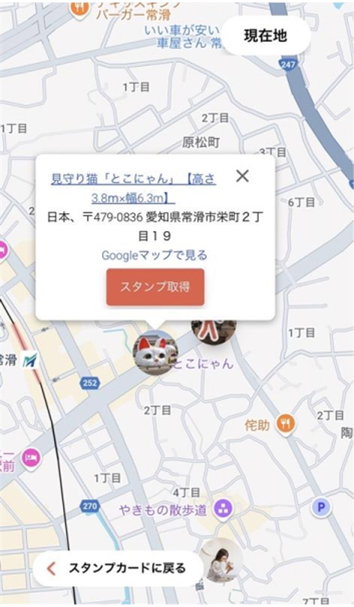 2. スポットをタップすると「スタンプ取得」のボタンが出るので、タップ