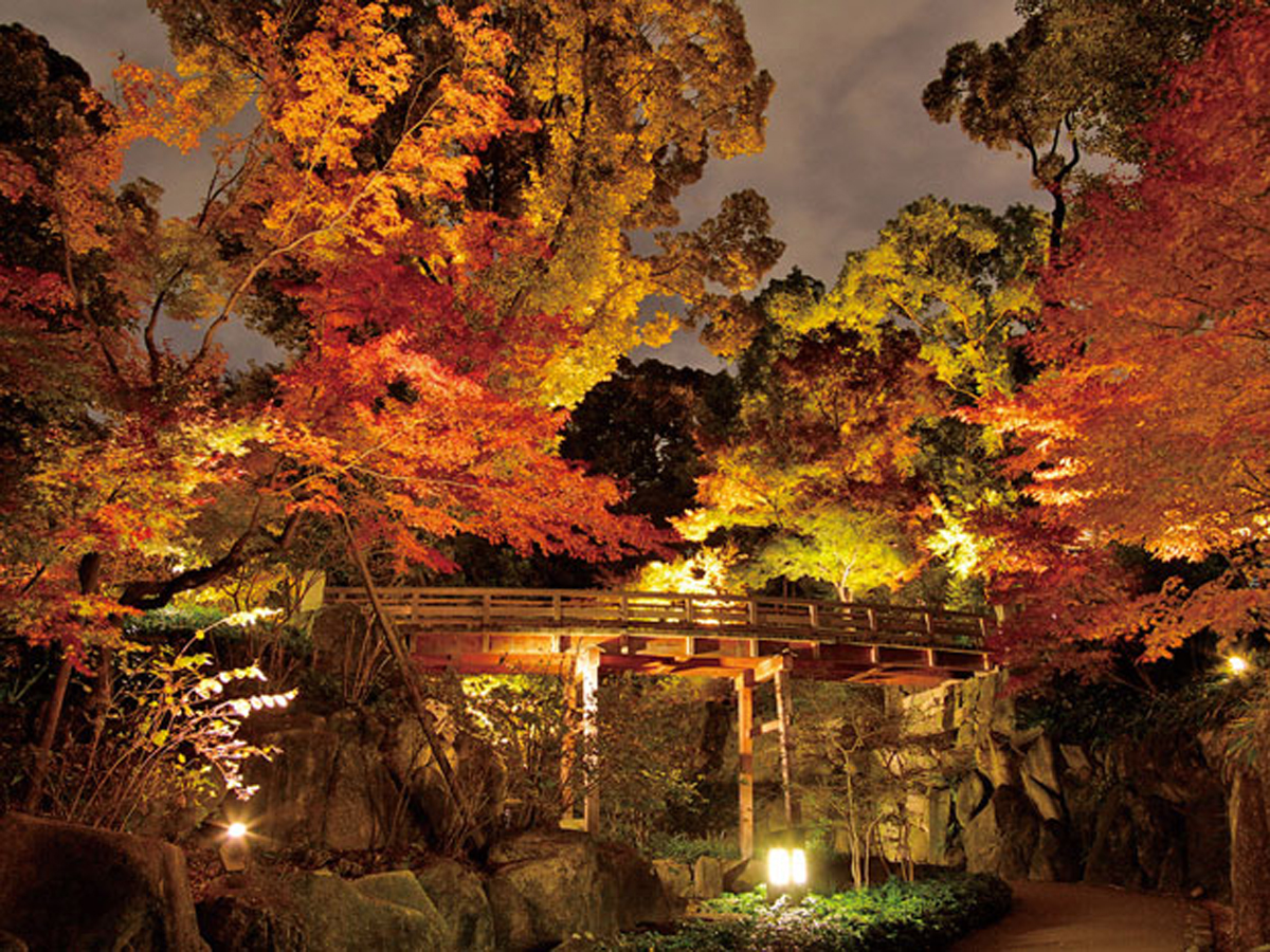 尾張藩二代藩主光友の隠居所として元禄8年(1695)に造営された大曽根御屋敷跡でした。総面積2.3ヘクタールにも及ぶ池泉回遊式の日本庭園で、高低差のある地形に林を配しています。立体的に迫る大きな岩組みや配置された山、大曽根の瀧、虎の尾、龍仙湖、牡丹園、菖蒲田は木曽山脈、自然の風景、景観が凝縮された日本庭園です。