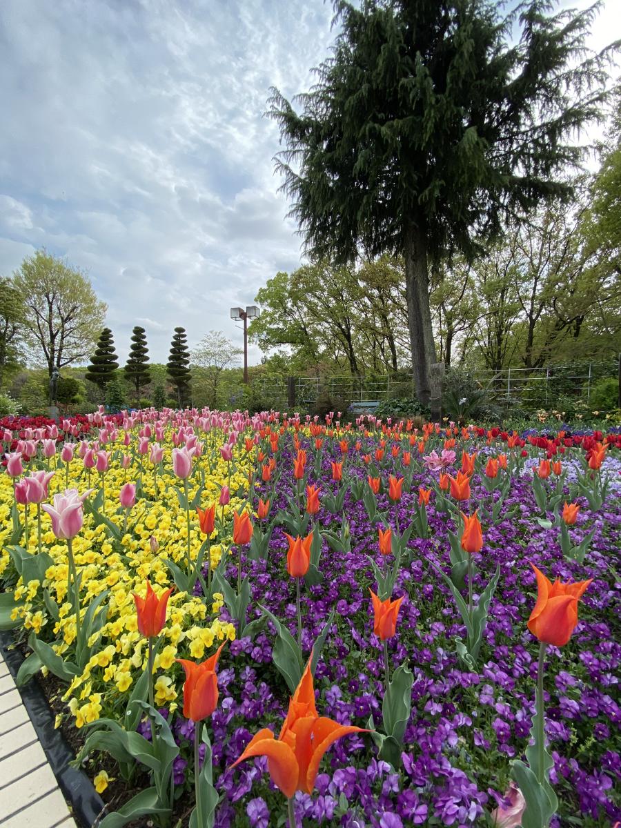 北園には、「せせらぎ亭」という水路やオランダ風車のある広い芝生広場があります。小高い丘の上にある「花の山」には季節になるとチューリップが咲き誇り、まるでオランダにいるような気分を楽しむことができます。