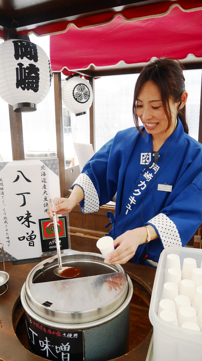 八丁味噌は、大豆と塩だけで作られる“豆味噌”。家康公の生誕の地である岡崎城から西へ八丁(約870メートル)ほど離れた旧八丁村で、『カクキュー』と『まるや』が昔から味噌を作っていたのだとか。「東海道を通る旅人たちの間で、その美味しさが評判となり“八丁味噌”と呼ばれるようになったんですよ」とガイドの鳥山さん。