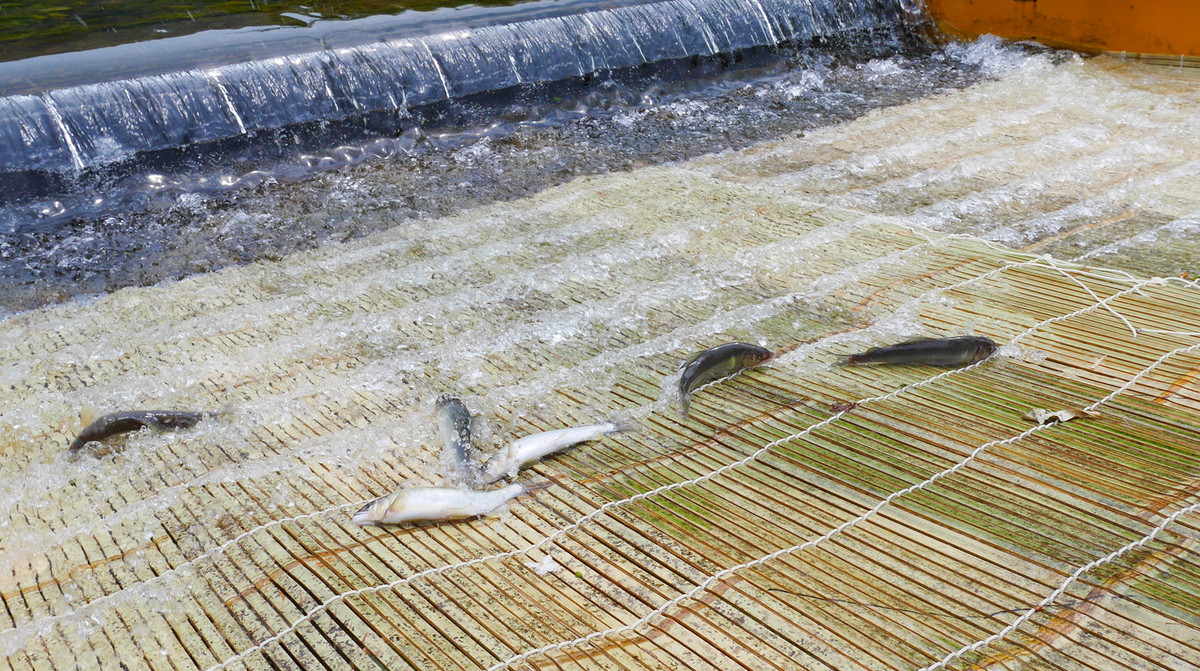 Stepping on the bamboo-made weir deck and getting our sore feet on the chilly mountain waters was nice and refreshing. The mechanics are simple enough: you just wait for the fish to fall into the trap then grab them. While staring at the water falling into the trap and wondering how on earth were we supposed to grab the fish, contemplating the possibility that no fish would fall to it, people suddenly started to yell “There they come! Catch them!” First one, then two, then before no time dozens were flopping and struggling on the deck! Alright then, I don’t know where they came from, but let’s catch them! Those pesky little fish are pretty slippery and energetic, so when grabbing them make sure to cover their eyes: it makes them much more quiet and easier to carry until you drop them on the bucket (also kindly provided).