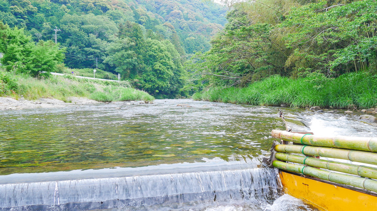 A bit further deep behind this area is the bamboo forest from where the material used to make the weir is harvested. We heard that it is made anew each year, and uses about a 120 or so of them. In late April the cut bamboo is laid over the frame to make the new weir, and has a light green color, kind of fit for the upcoming hot summer days. As the season progresses, it goes gradually turning its color to a golden yellow, just like welcoming autumn.
