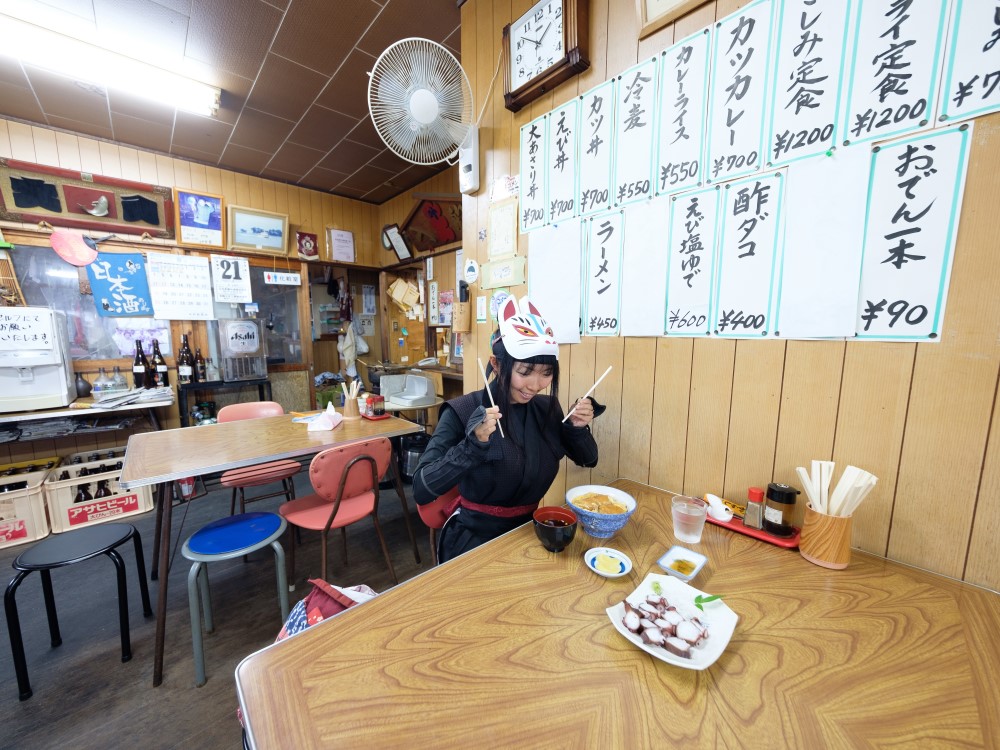 一上午轉了很多地方,有點餓了呢,去鈴屋吃島上的名吃大蛤蜊蓋飯吧。這裡的大蛤蜊蓋飯是將在三河灣捕獲的大蛤蜊裹上粉油炸,像親子蓋飯一樣澆上雞蛋,味道很不錯。除了蓋飯,還提供新鮮的生魚片等菜品。大家一定要品嚐一下島上的特色啊。