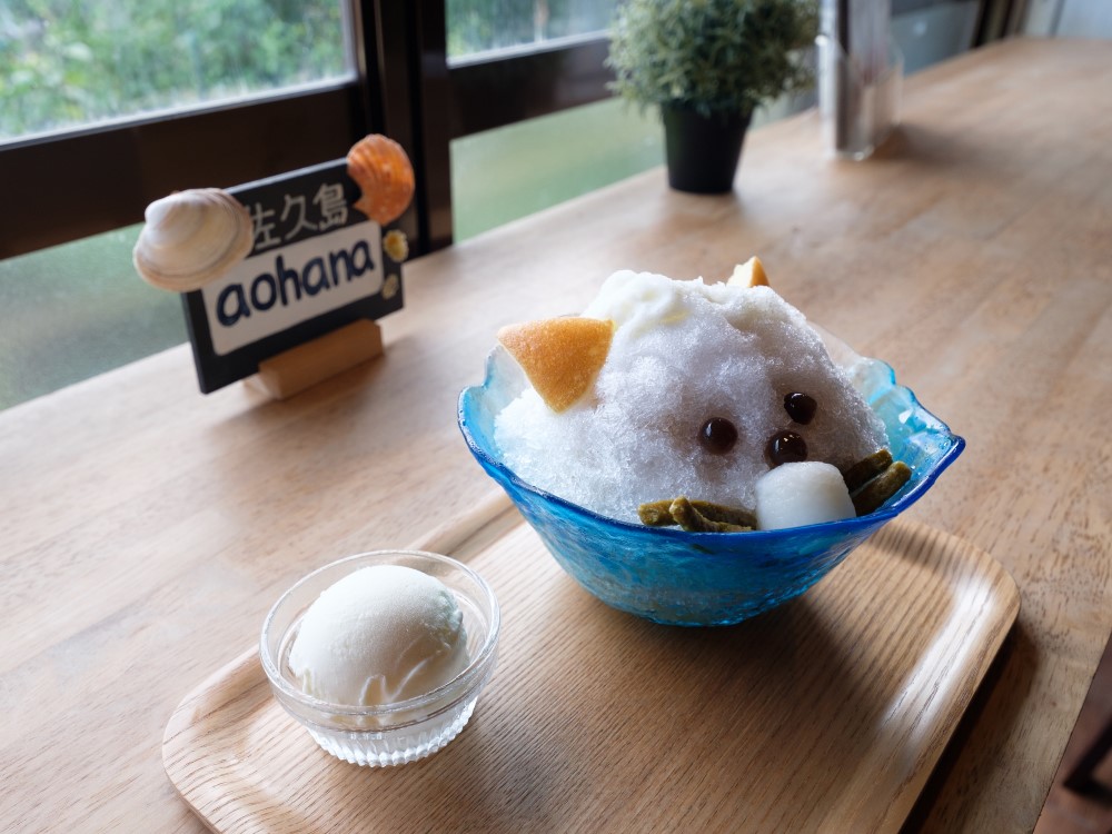 佐久島不愧是藝術之島,除了各種藝術作品外,還隨處能看到很有特色的咖啡廳。休息時間,去吃個刨冰吧。金魚缸刨冰、花盆刨冰、佐久島貓咪刨冰,不管是容器還是外觀,都栩栩如生,彷彿藝術作品一樣,可愛的讓人不忍心下口。