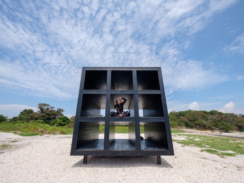 沿著羊腸小道一路到了海邊,眼前出現了一個黑色的藝術造型,這就是著名的午睡House了,以人和自然的對話為主題。造型分成9個空間,非常適合午睡,遊客不多的時候,在這裡躺下,在海風的吹拂中小憩一會,一定非常愜意。它還曾經出現在2010年上映的電影版《名偵探柯南 天空的遇難船》中。