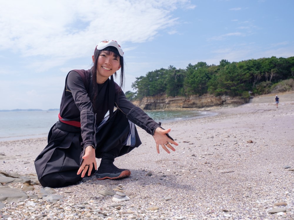 新谷海岸的沙灘看起來呈淡紫色,日本僅此一處!據說是碎掉的貽貝貝殼混雜在沙子裡,所以看過去是淡紫色的。還有一個美麗的傳言,據說這裡“對戀愛非常有效”,建議戀人們到這裡打卡!