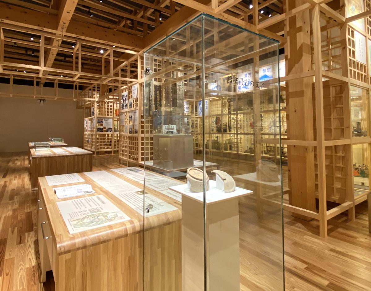 用傳統的房頂構架構成的展示室使用的是檜木實木,一進門就能聞到檜木的木材香味,非常治愈。