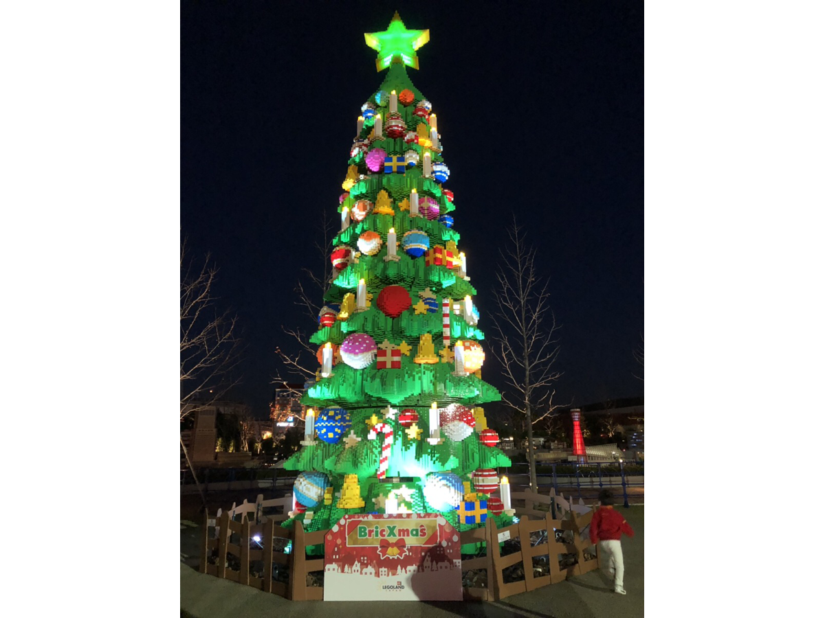 在迷你大陸深處的聖誕活動會場,61萬個積木搭建而成的高10m、寬4m的巨型聖誕樹非常引人注目。夜幕降臨後,聖誕樹會亮燈,頂部的星星和樹上的蠟燭一閃一閃的,BLINGBING,在夜間很有情調。