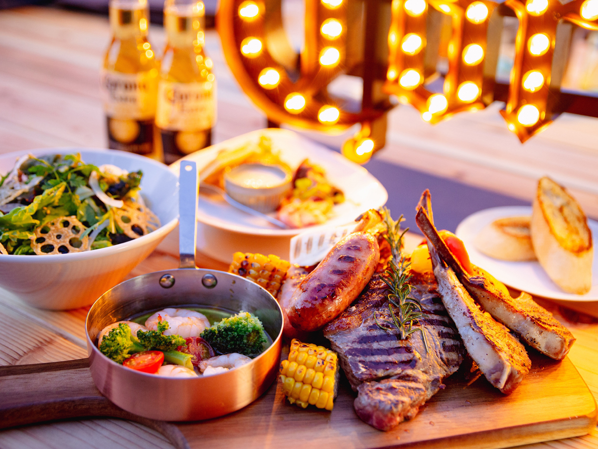 在2022年開業的URBAN金山,可以在遠離城市喧囂的屋頂啤酒花園享受非日常的同時,以優惠的價格享用“莎朗牛排”、“香草烤羊排”、特别準備的“海蠣”等奢侈的BBQ素材。 今年夏天的SNS上鏡景點決定版。今年夏天也在時尚的啤酒花園開心度過吧!