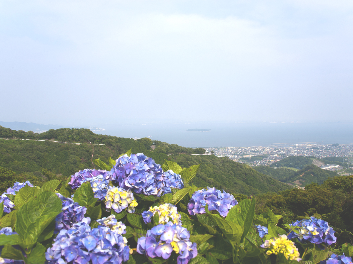 三根山地平線,別名紫陽花線,沿途的紫陽花非常出名。 從6月到7月初,這裡將有7萬株紫陽花盛開。可以邊俯瞰三河灣的全景邊在紫陽花的包圍中兜風。