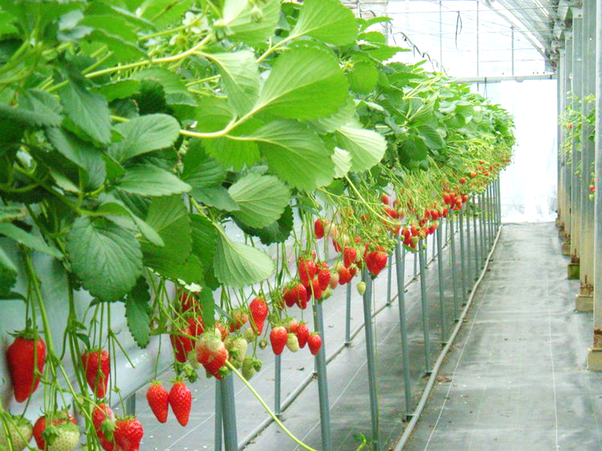 請盡情享用溫室中的高設栽培一顆顆精心培育出的紅艷、甜美的草莓。