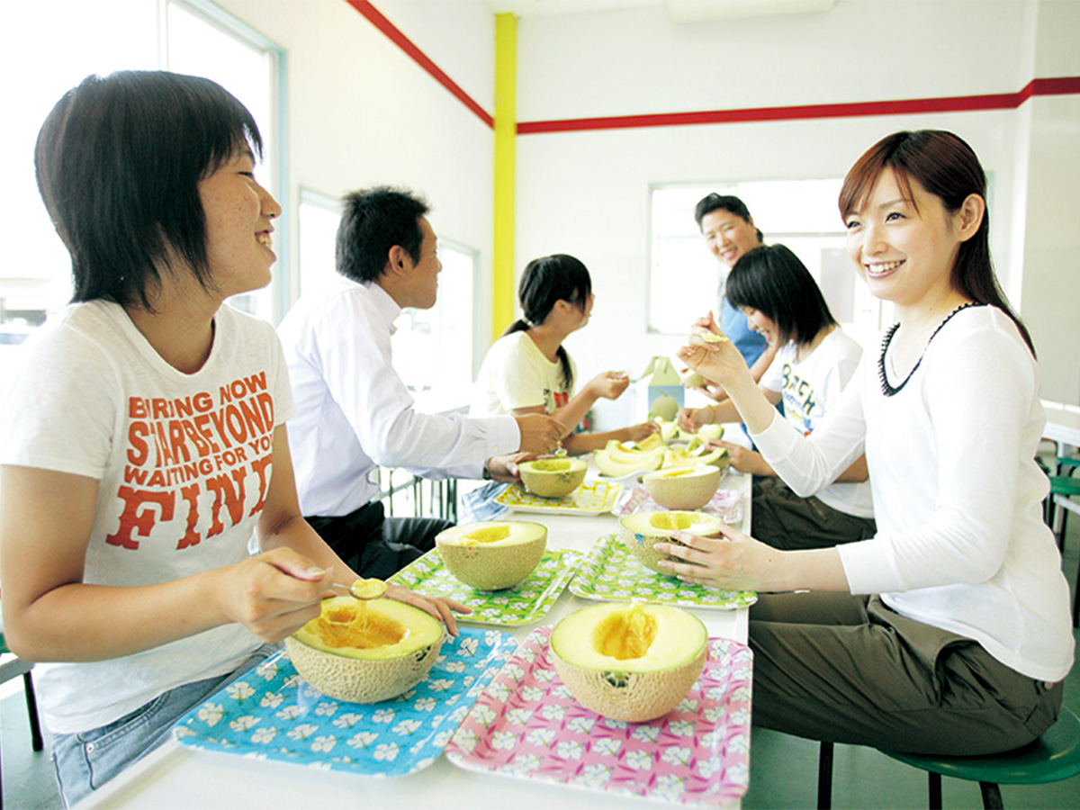 因為是產地,才能體驗“摘蜜瓜”。用自己的雙手去收穫熟透的、長得圓滾滾的蜜瓜吧。在可收納500人的寬敞空間,暢懷挑戰“蜜瓜暢食”吧!味道甜美、果汁豐富的網紋蜜瓜任您吃個夠。 還有產地直銷,可以購買美味水果帶回家當伴手禮。