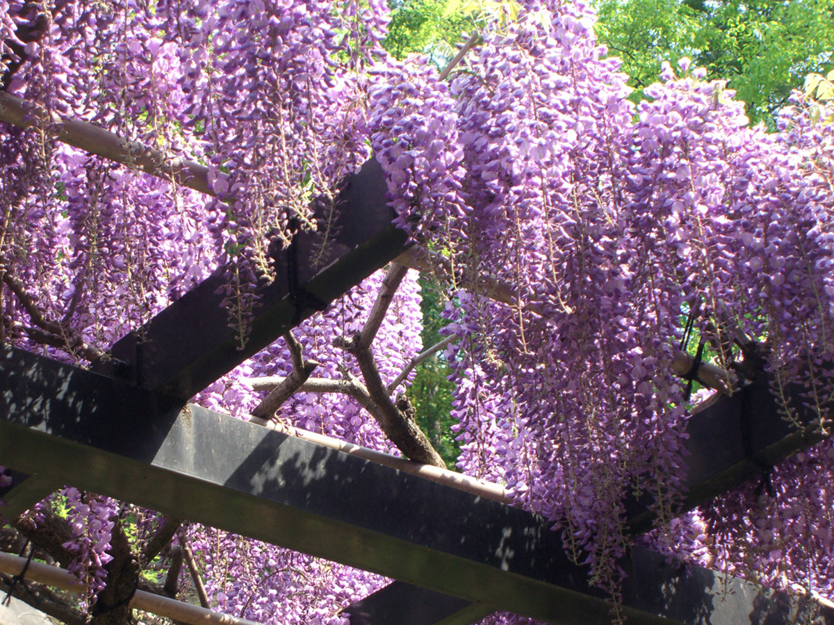 紫色的藤花在黃金周正好可以迎來最佳觀賞期。小小的蝴蝶狀花朵開得密密麻麻,穗狀花序像瀑布一樣低垂。為此,藤花名地都特意用竹竿或木頭搭建藤棚,將藤蔓纏在藤棚上,方便大家觀賞。藤花的花語是 “歡迎”和“陶醉”。據說是從一邊賞藤花一邊喝酒非常優雅而來的詞彙…不管藤花怎麼美,觀賞的時候一定不要喝醉哦。