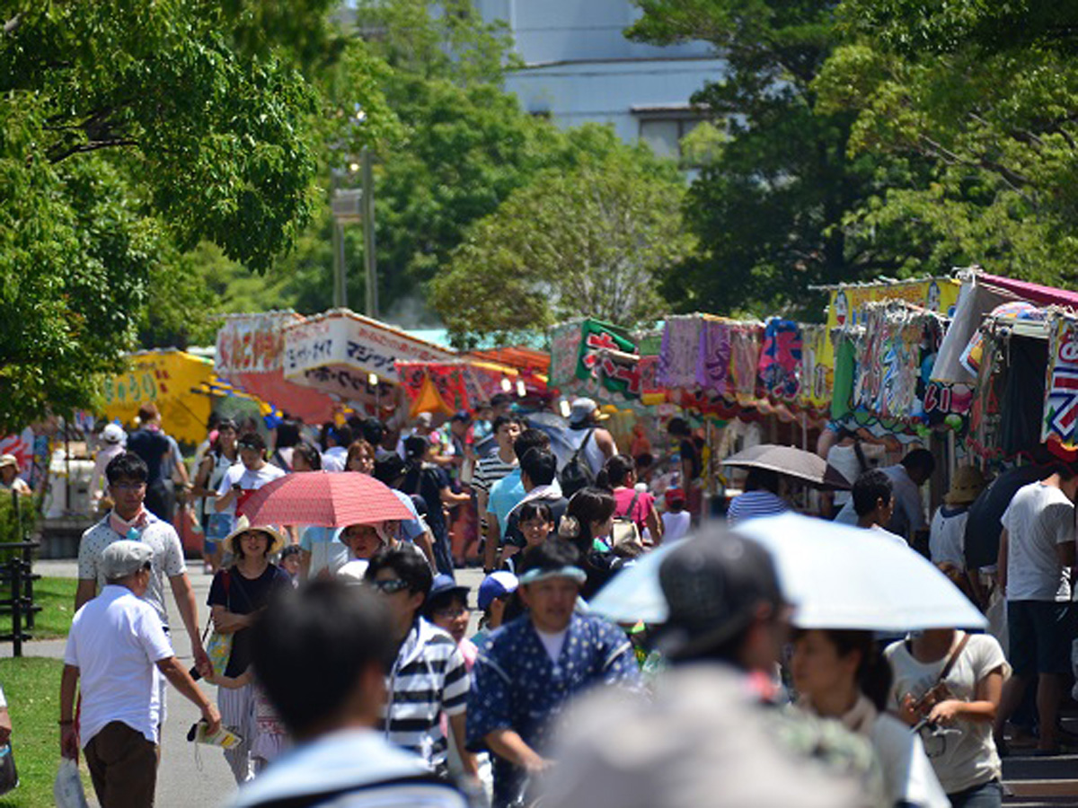 從江戶時代起豐橋祗園祭的焰火大會就以“三州吉田的花火祭”這個名字而享有盛名。花盒煙花、金魚煙花、8號玉、速射連環創意煙花等接連不斷升空,光影淹沒了清流豐川的水面,裝點了夏季的夜空。 7月18日(星期五)將在吉田神社內燃放手筒煙花,19日(星期六)在豐川河畔舉辦焰火大會。