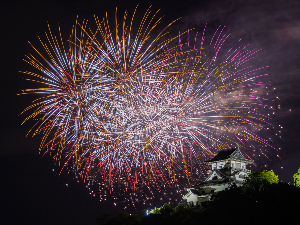 日本萊茵夏日祭納涼焰火大會是以國寶・犬山城為背景舉辦的焰火大會。 以流經愛知縣犬山市和岐阜縣各務原市交界處的木曽川為舞台,煙花連續10天騰空升起。 從浮在河面上的小船上燃放速射連環創意煙花,在空中綻放出大大的花朵。