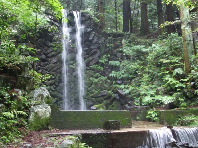高約30m、寬7m、岩盤重疊,激流呈兩層落下,據說這就是瀑布名字的由來。這裡有據說是大蛇居住的洞穴,流傳著“目擊的人會因為蛇的毒氣得熱病”“瀑布潭裡住著龍王,觸碰瀑布的話會有報應”等諸多傳說。大雨過後,瀑布水量增加,非常值得一看。