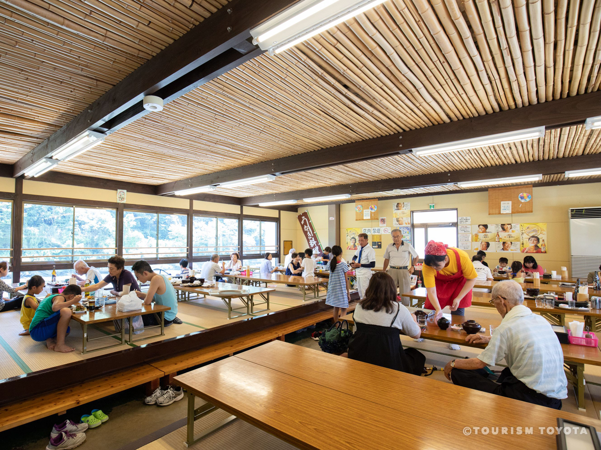 位於矢作川中遊的廣瀨觀光魚梁,每年7月至10月中旬期間營業。這裡的魚梁是用傳統制法搭建而成的。手抓的香魚,可以用炭火烤製後享用。 魚梁場的旁邊有用餐空間,可以邊感受自然風光邊享用美食♪