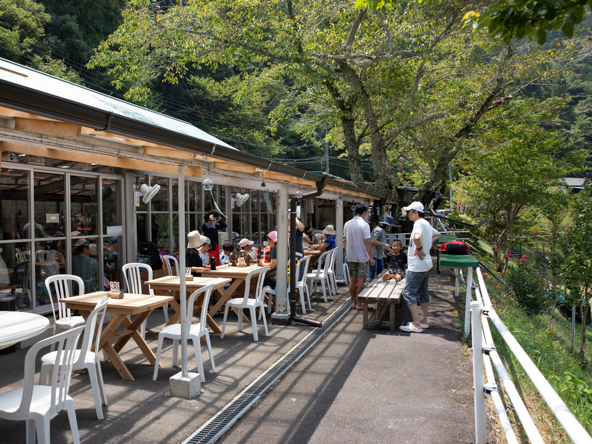 可以在這裡享受手抓香魚和河邊玩水的樂趣。可在帳篷廣場享用的鹽烤香魚、香魚五平餅、香魚飯是人間絕品!一定要品嚐哦。還可以在河岸BBQ♪(需預約)