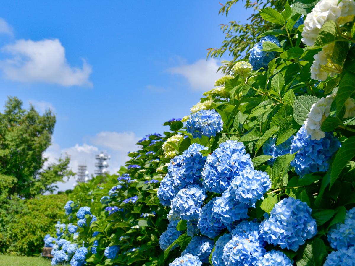 6月到7月初,約7万株紫陽花在這裡競相開放,形成一道靚麗的風景線,可在俯瞰三河灣的大全景的同時享受紫陽花一路相送的自駕遊♪