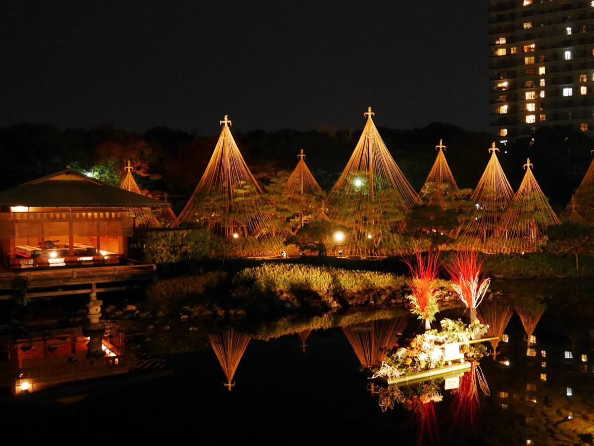 在楓樹等約1,500棵樹木染紅的最佳觀賞期,將舉辦“觀楓會 紅葉茶會”。期間當中,被紅葉、黃葉點綴得繽紛的園內有夜間亮燈活動。作為秋季庭園,可以觀賞到各種各樣的景色。