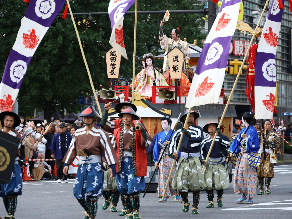 慶典的主要活動“鄉土英傑隊列遊行”,裝扮成與愛知縣深有淵源的武將——三英傑"織田信長・豐臣秀吉・德川家康",與身穿鎧甲的武士一起前行。之外,裝點了歷史和文化的市指定文物彩車和市級文物神樂以及華麗的花車也會登場。