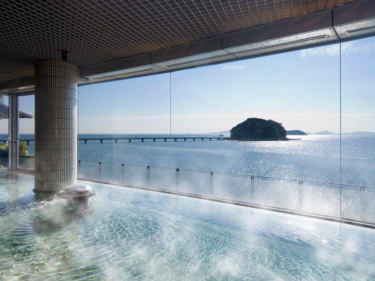- Suối nước nóng Gamagori Onsen nằm ngay ở phía trước hòn đảo Takeshima, một hòn đảo nhỏ nằm tách biệt và là biểu tượng của thành phố Gamagori, nơi du khách có thể ngắm nhìn vịnh Mikawa êm đềm rất gần. Nước nóng ở đây có tính kiềm, trong suốt không màu. Nước khoáng nóng này được đánh giá cao vì đem lại cảm giác làn da mịn màng nhẹ nhàng và được cho là có hiệu quả đối với chứng đau dây thần kinh, đau cơ, đau khớp, buốt lạnh và giúp phục hồi sức khỏe, v.v. Đây là khu nghỉ dưỡng suối nước nóng có lịch sử nổi tiếng, từ xa xưa đã từng được hoàng gia và nhiều văn nhân ghé thăm.